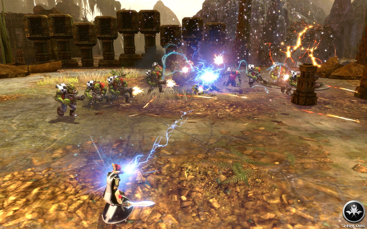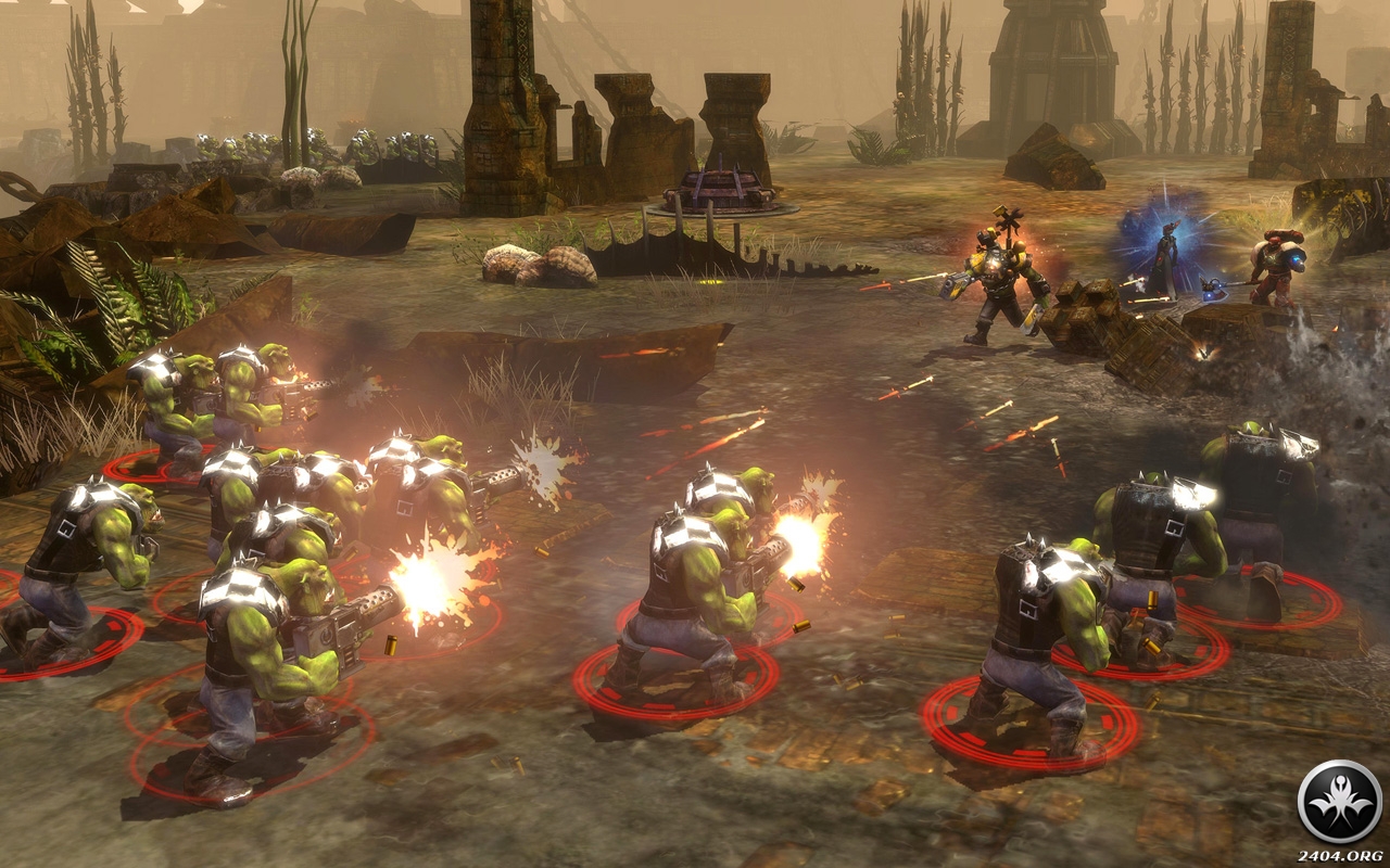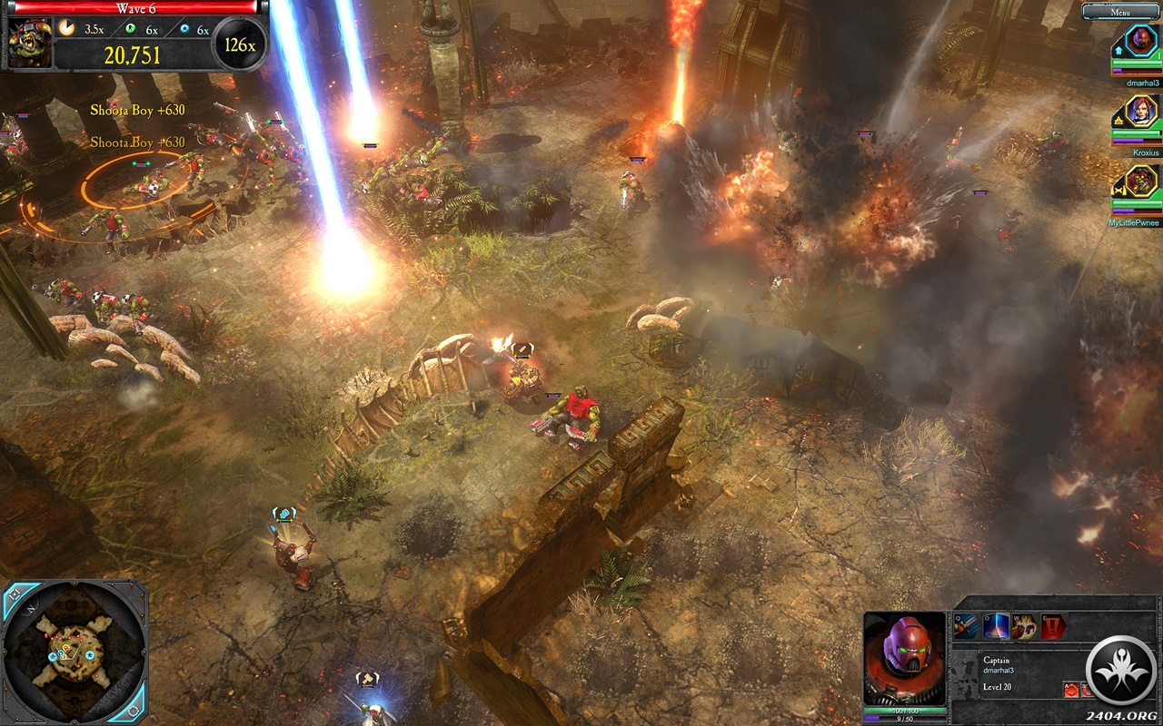 "The Last Stand is a cooperative survival mode that gives gamers control of an individual hero unit and drops a small multiplayer team into a battle with impossible odds. Players can choose between a Space Marine Captain, Eldar Farseer or Ork Mekboy and will team up with two other squad-mates in an attempt to hold out as long as possible against wave after wave of relentless attackers. Hero units level up and are fully customizable as new armor and weapons become available from game to game. Working together to devise innovative strategies is the key to success in this brand-new battle mode.