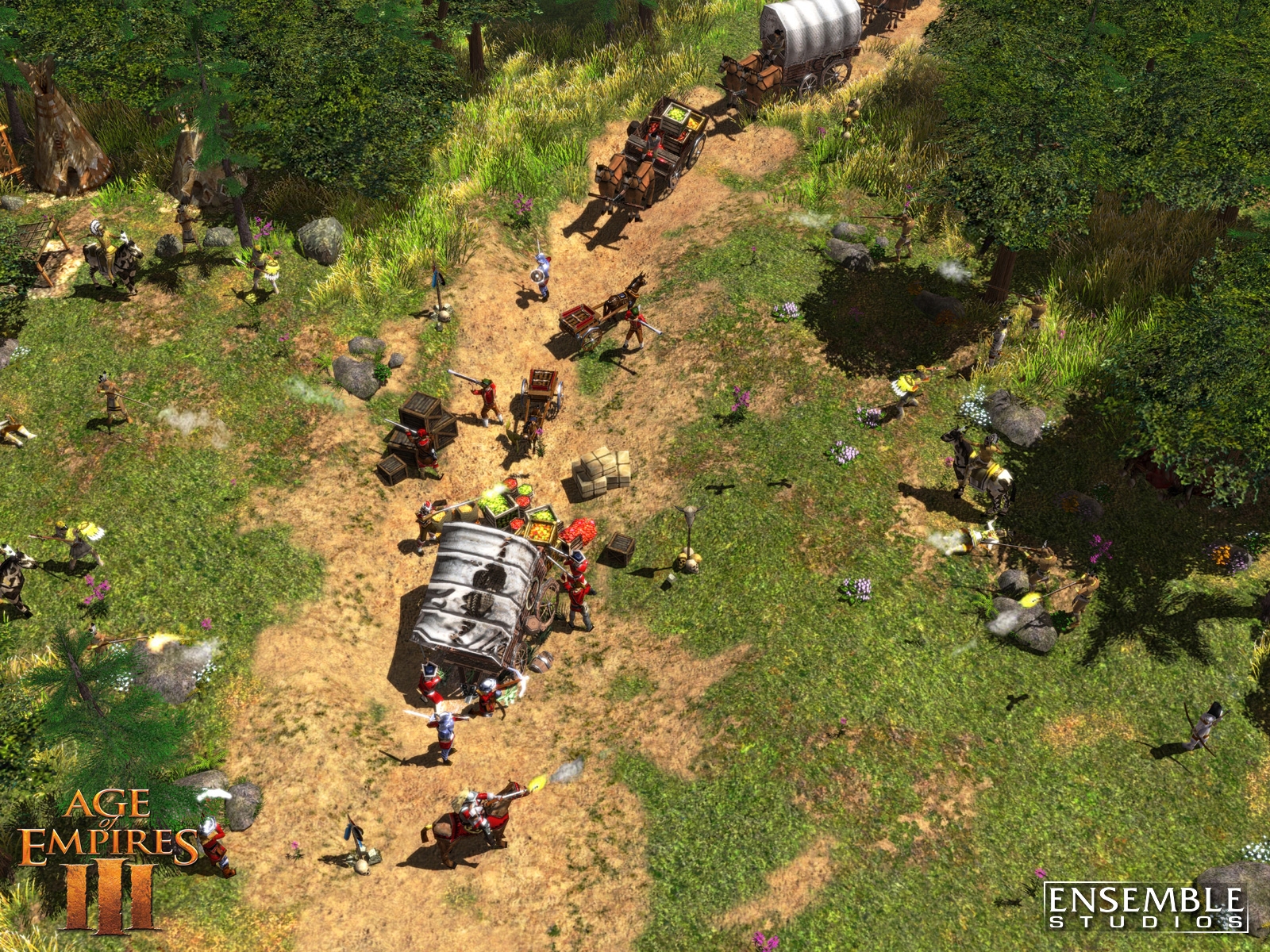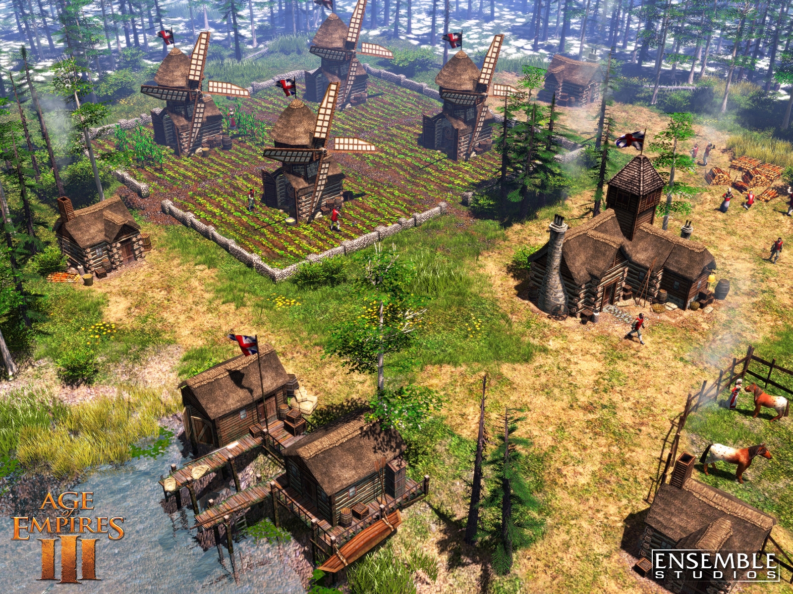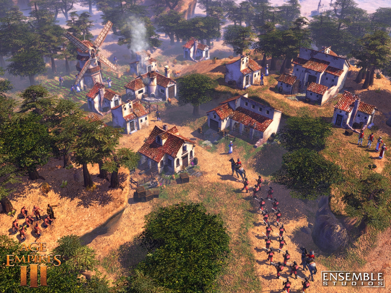 Age of Empires III is Ensemble Studios' landmark game of discovery and conquest in the New World, featuring spectacular graphics and physics never before seen in a real-time strategy (RTS) game. In Age of Empires III, players assume the role of a European power between 1500 and 1850 A.D. as they struggle to explore, colonize and conquer North and South America. Scheduled for release October 25th, Age of Empires III is the third installment in the award-winning Age of Empires series that has sold more than 16 million copies and defined the historical RTS. By introducing revolutionary new gameplay features like the Home City, the ability to ally with and produce Native American units, awe-inspiring visuals with a fully realized physics engine and more, Age of Empires III will expand upon the legacy of its predecessors and once again set the standard for real-time strategy games.