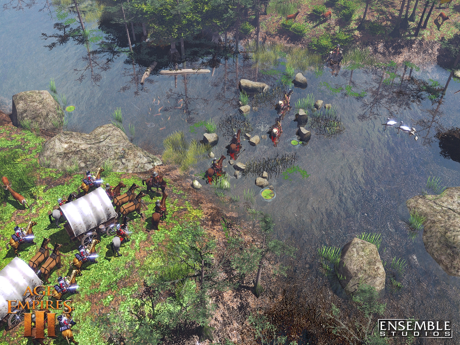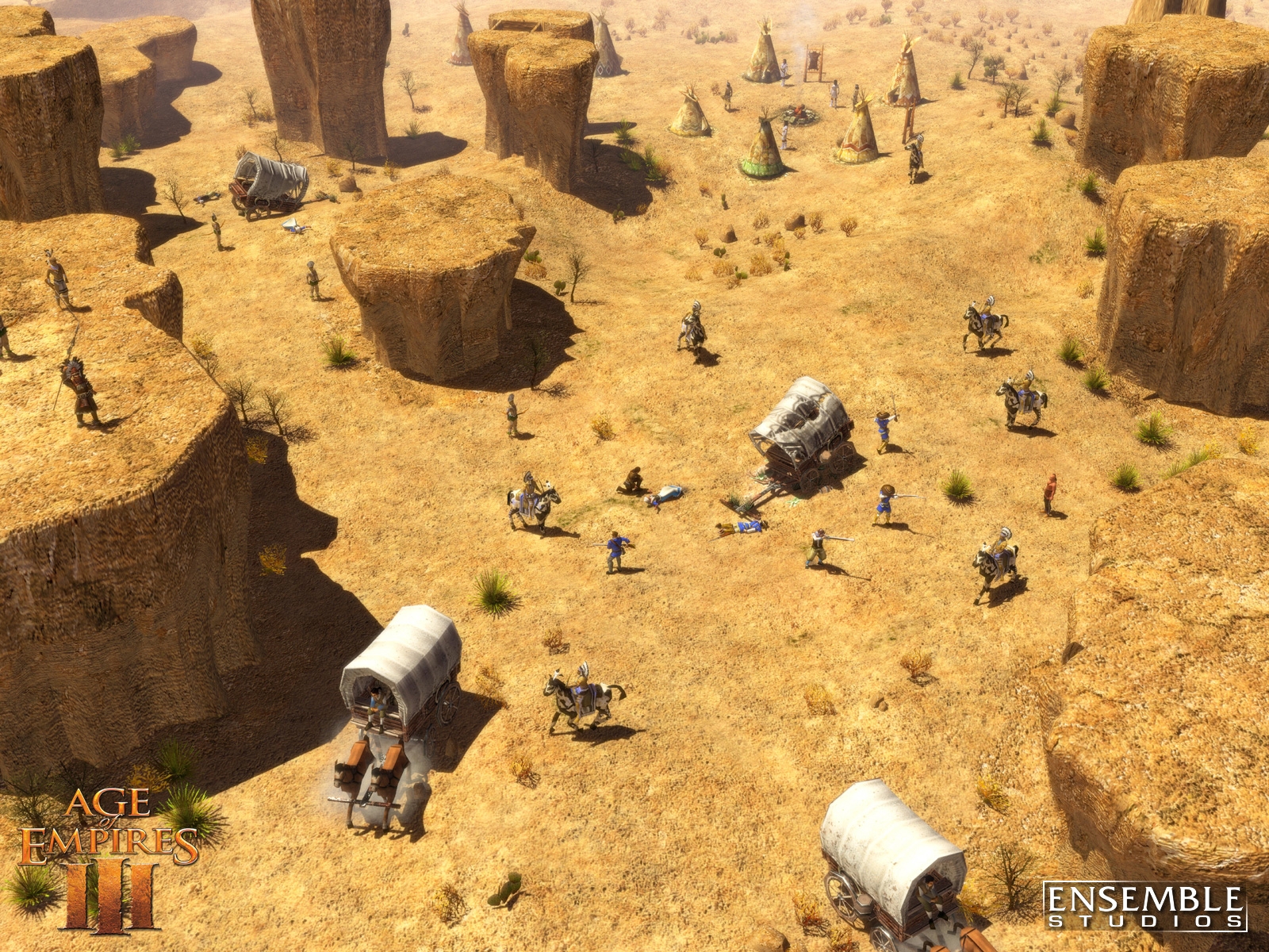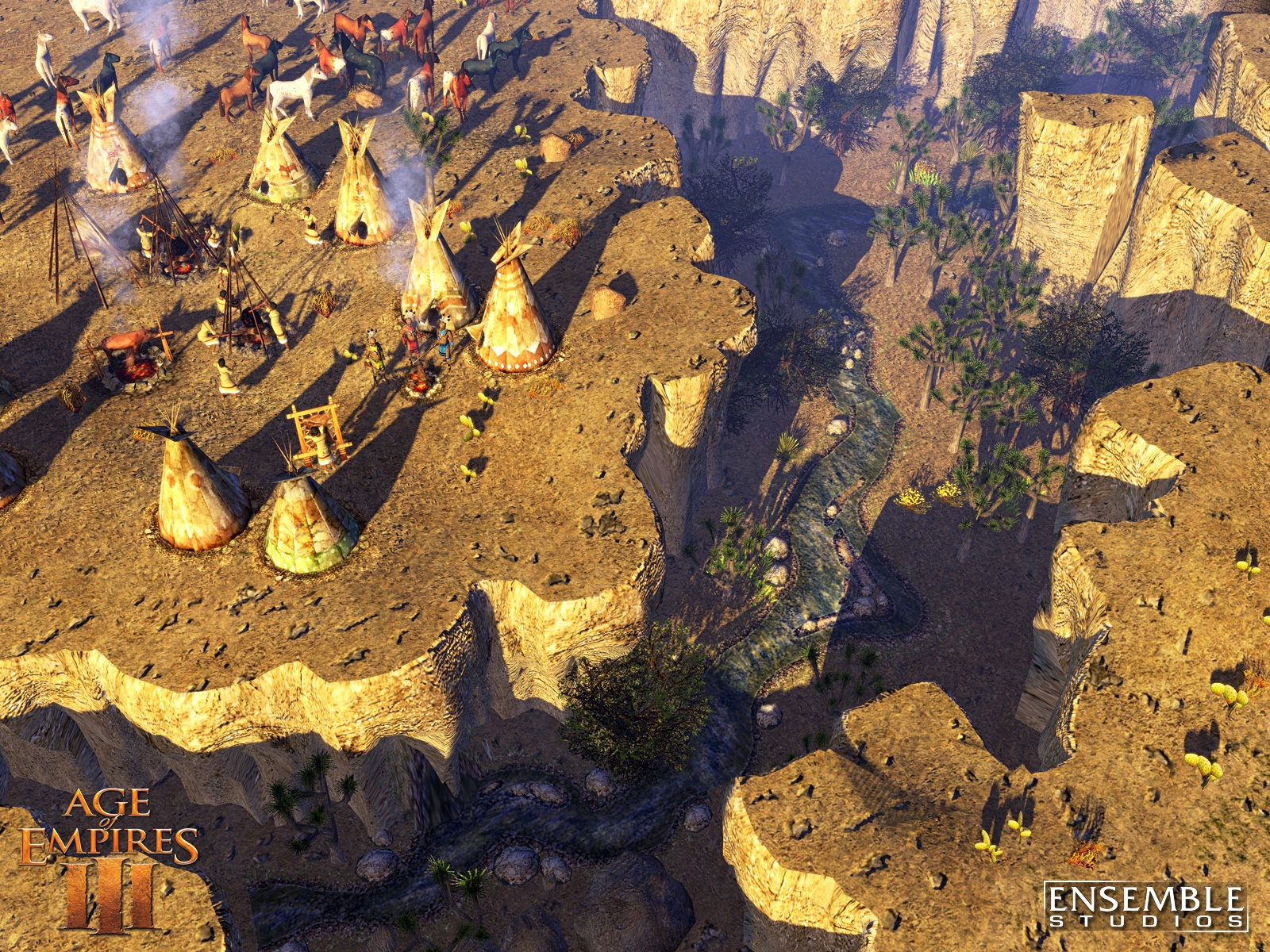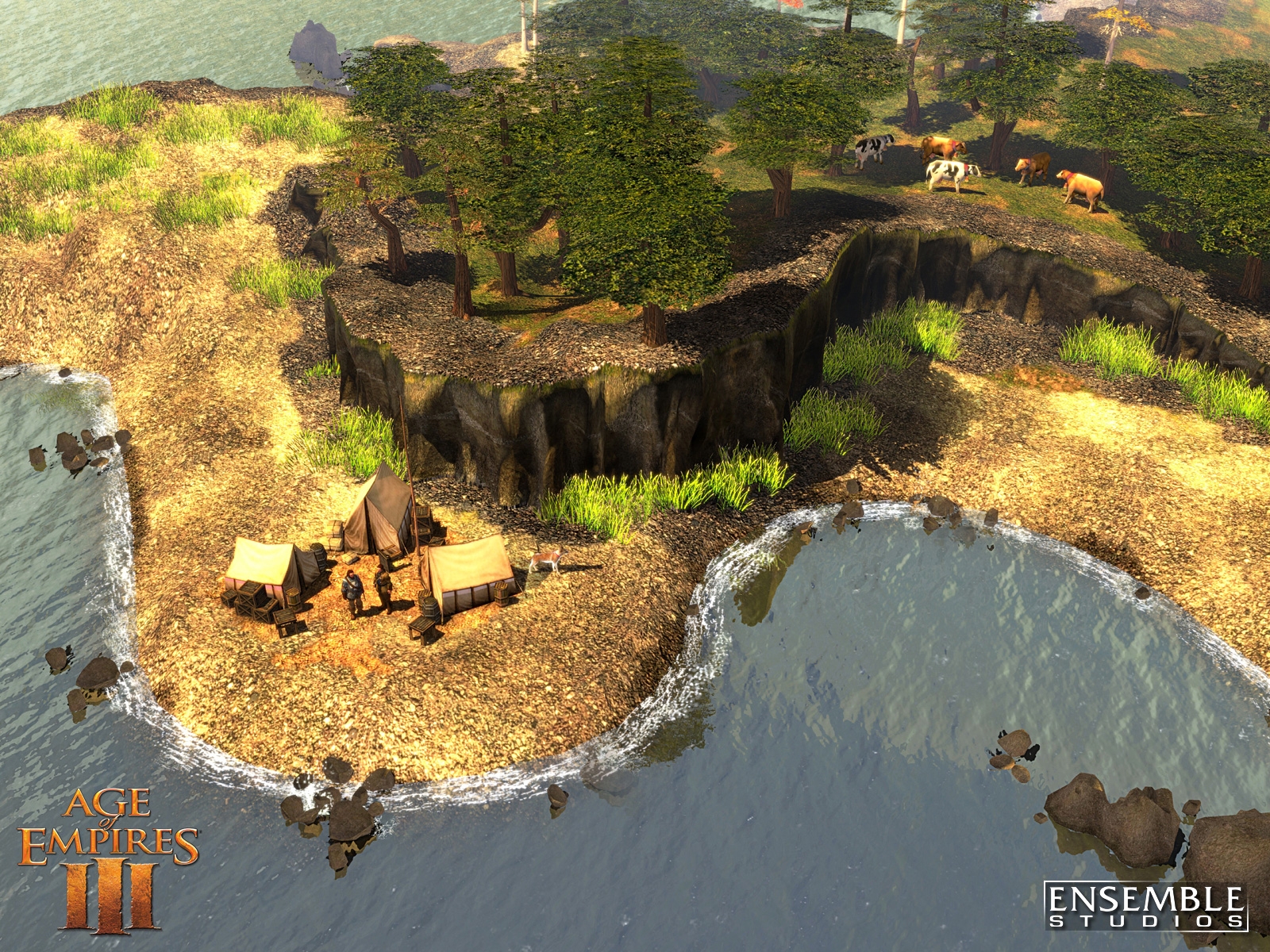 Age of Empires III is Ensemble Studios' landmark game of discovery and conquest in the New World, featuring spectacular graphics and physics never before seen in a real-time strategy (RTS) game. In Age of Empires III, players assume the role of a European power between 1500 and 1850 A.D. as they struggle to explore, colonize and conquer North and South America. Scheduled for release October 25th, Age of Empires III is the third installment in the award-winning Age of Empires series that has sold more than 16 million copies and defined the historical RTS. By introducing revolutionary new gameplay features like the Home City, the ability to ally with and produce Native American units, awe-inspiring visuals with a fully realized physics engine and more, Age of Empires III will expand upon the legacy of its predecessors and once again set the standard for real-time strategy games.