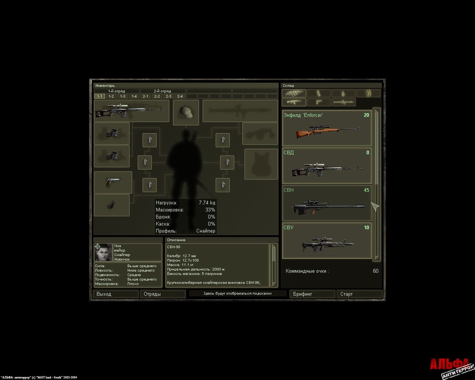 ALFA: Antiterror is a turn based tactical combat simulator that lets the player control this special operations force through a four episode campaign based on the real life experiences of former ALFA members from 1984 to 2001. Gameplay takes place in a variety of settings including the desert, mountains and valleys, forests, small cities and towns and features a wide selection of weapons from International manufacturers of warfare such as AKSU-74A, Colts, sniper rifle SVDs, grenade launcher RPG-7s and much more.