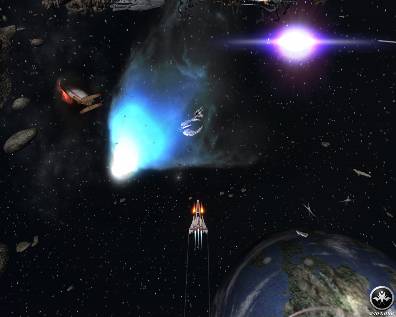 Battlestar Galactica is an action-packed top-down space combat game set in the universe of the hugely popular sci-fi television show. Sign up to defend the Galactica, or play as the ruthless Cylons as they seek to remove the human menace from existence. Take part in enormous multiplayer space battles – up to 8 players online – or play through the single-player campaign.