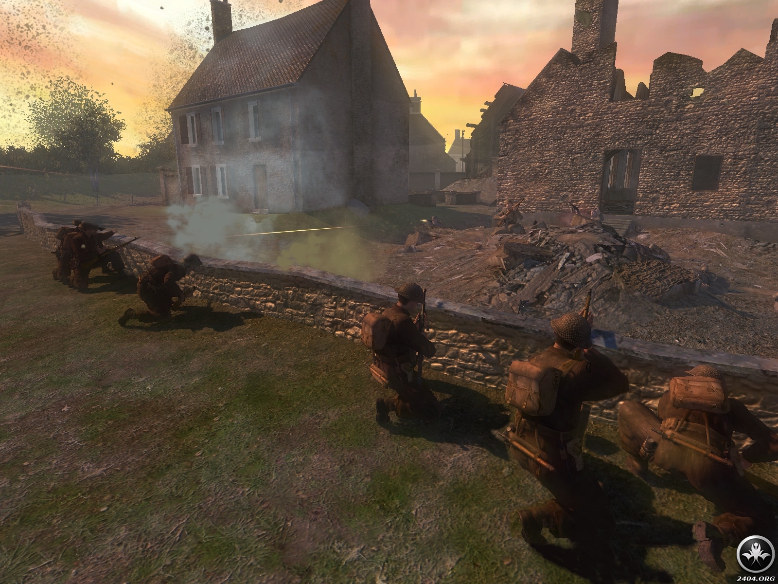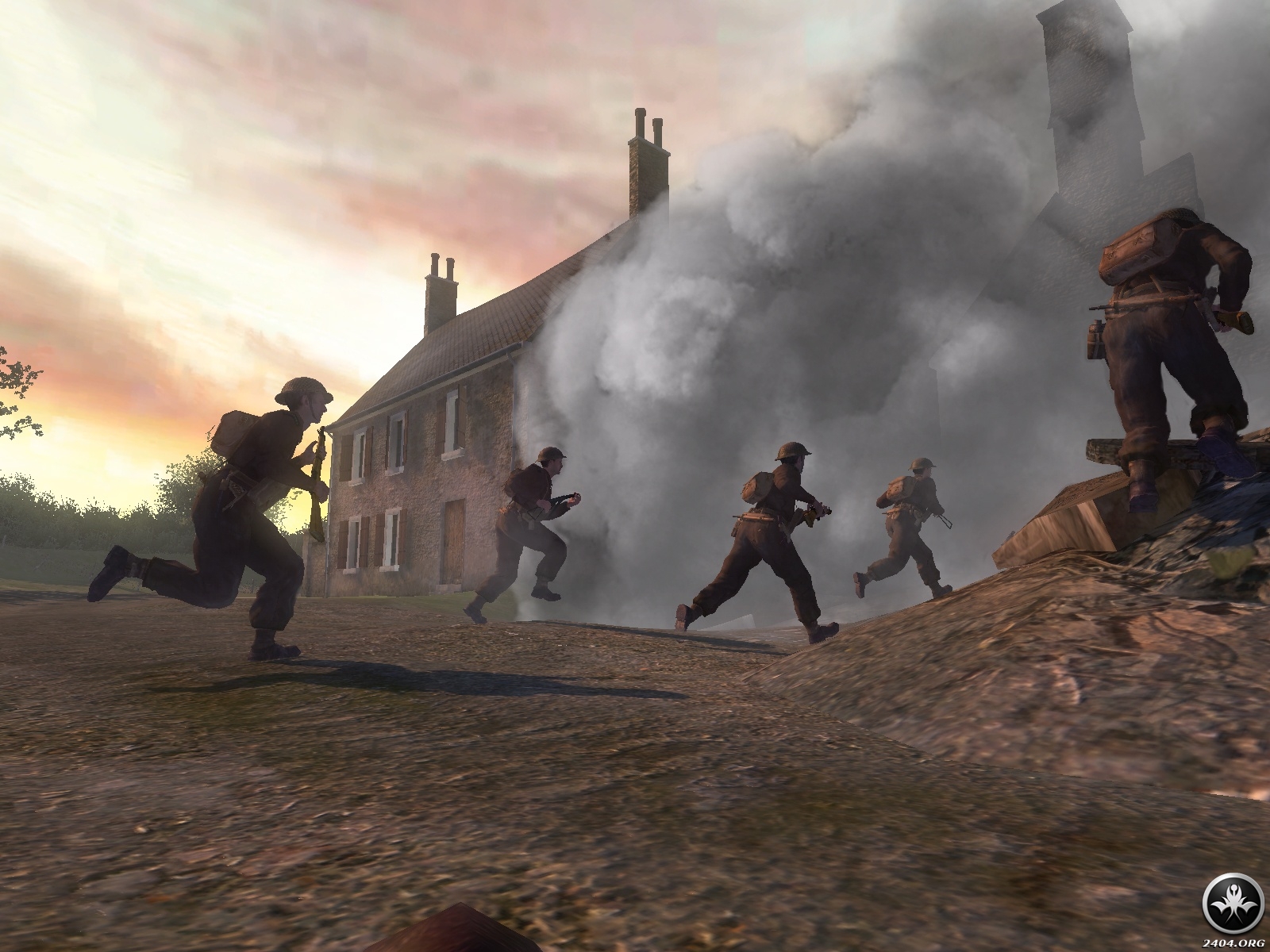 - Rely on your squad as never before: The dozens of Allied soldiers surrounding you are fully aware of the changing situations around them, and will let you know using an all-new, context-sensitive battle chatter system. They will draw enemy fire, lay down cover for you, use foxholes and moving tanks for cover, and warn you of incoming enemy troops and hostile fire.