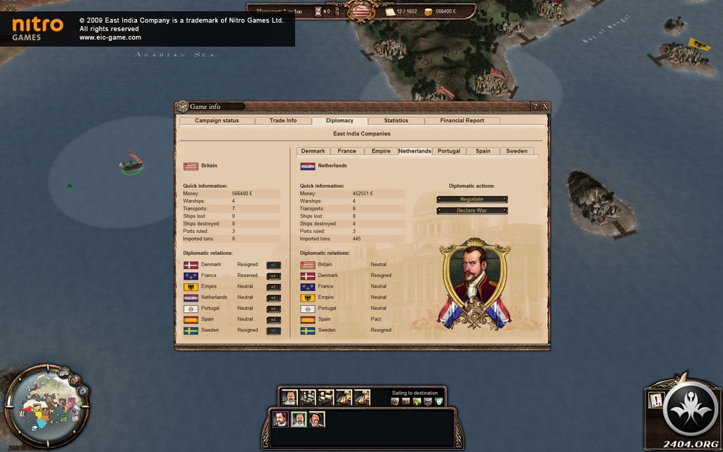 Players will fight, manage and rule their trading empires from Europe to the Far East with eight nationalities to choose from: British, Dutch, French, Danish, Portuguese, Swedish, Italian or Spanish.