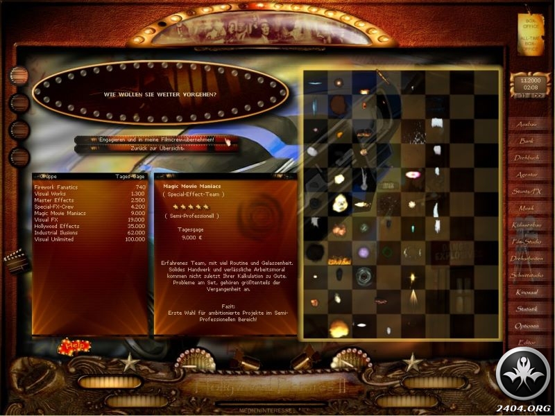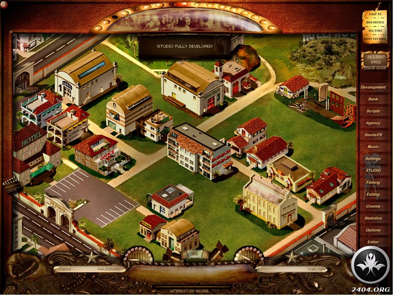 The scruffy movie studio site you inherit at the beginning of the game can be expanded to help ease the costs of big movie production. In addition to your basic production house, special effects studios, acting colleges and even a fire department can be constructed to quell those inevitable pyrotechnical accidents on set, which can cost you valuable days filming!