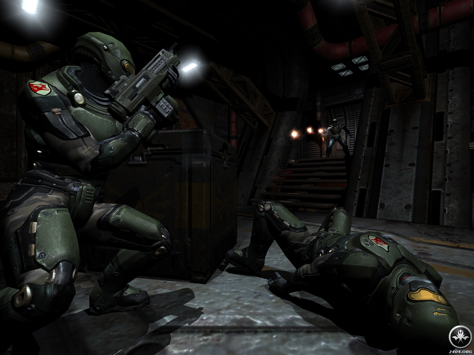 The next-gen chapter of id's infamous shooter series (built on the DOOM 3 engine) for consoles and PC systems. In the game, you are Matthew Kane, an elite member of Rhino Squad and Earth's valiant invasion force. Fight alone, with your squad, and in hover tanks and mechanized walkers as you engage in a heroic mission into the heart of the Strogg war machine. But, in this epic war between worlds, the only way to defeat the Strogg is to become one of them. Battle through early missions as a deadly marine, then after your capture as a marine-turned-Strogg with enhanced abilities and the power to turn the tide of the war.