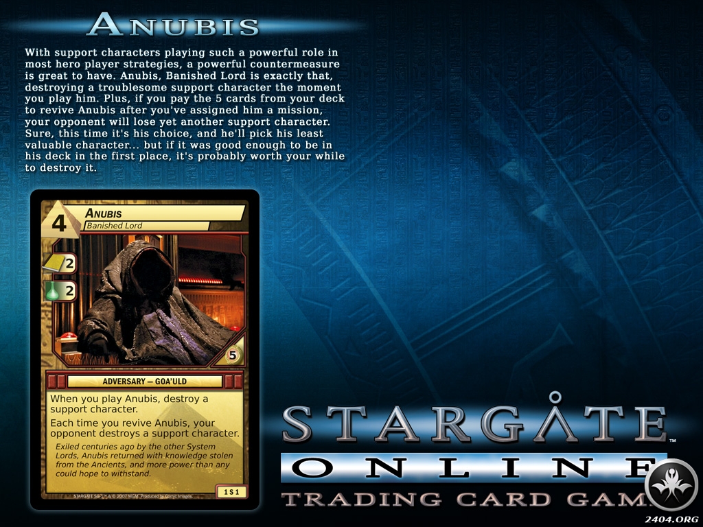 The Stargate TCG immerses players in the vibrant Stargate universe as they assemble their favorite SG characters into teams and send them on missions throughout the galaxy. Breakthrough gameplay allows characters to "learn" from their successes and enhance their abilities as the game progresses. With three unique ways to win and nearly 300 cards in the initial set, players have an endless supply of strategies available as they take on alternating roles of both heroes and villains of the Stargate television series.